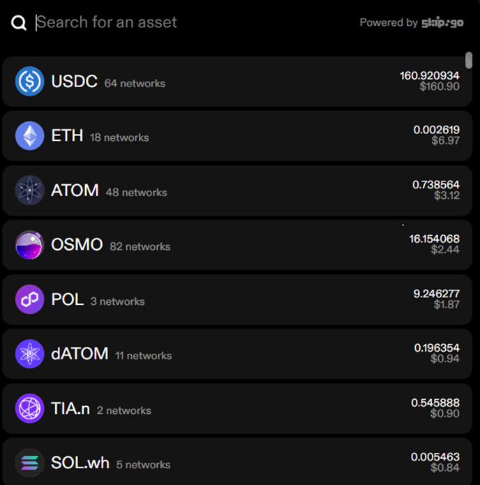 In the background, the API provides automatic DEX aggregation, bridge routing, denom recommendation, and relaying for all actions.